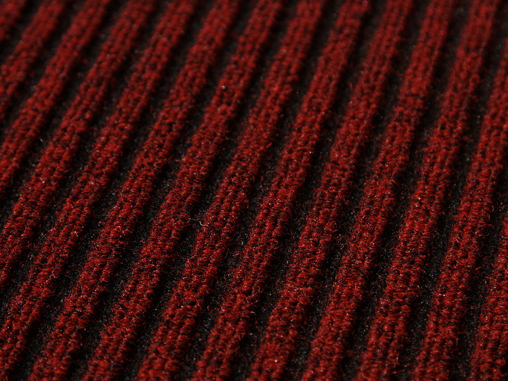 Čistící zóna Liverpool40 červená je metrážová koberecová rohož, která se používá do vstupních prostor k čištění bot. Tato čistící zóna má pruhovaný vzor, vyroben technikou vpichování na protiskluzné podložce