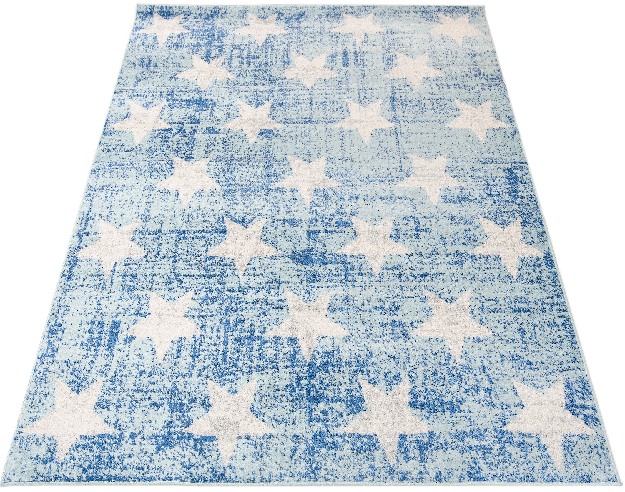 Kusový koberec Happy pastel H332A WT světle modré pastelové barvy s jemným vzorem, je vyroben z materiálu 100% Polypropylen heatset friese, výška 12mm s hmotností 2250g/m2.