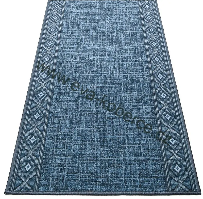 Moderní běhoun Sarah modré barvy je vhodný do chodeb, předsíní, na schodiště. Výrábí se v šířkách 67cm, 80cm, na protiskluzném podkladu a libovolné délce. Cena je za bm.