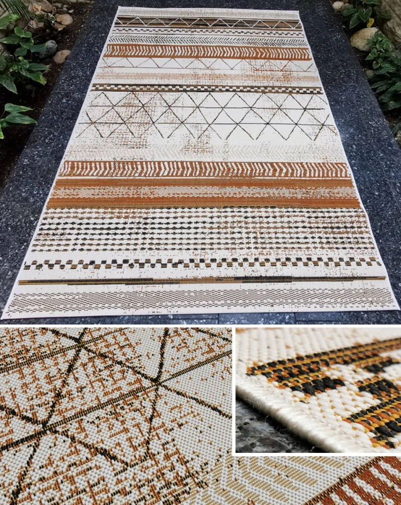 Praktické buklé koberce Star 19582-460 s vícebarevným indiánskym vzorem terracotové barvy na krémové základní barvě. Tyto tkané kusové koberce s nízkou pevně utaženou smyčkou, které se hodí do prostor s velkým provozem jako chodba, kuchyň, chata, chalupa, veranda apod. Koberce Star jsou odolné, nesešlapávají se, snadno se čistí a jsou v přírodních barvách.