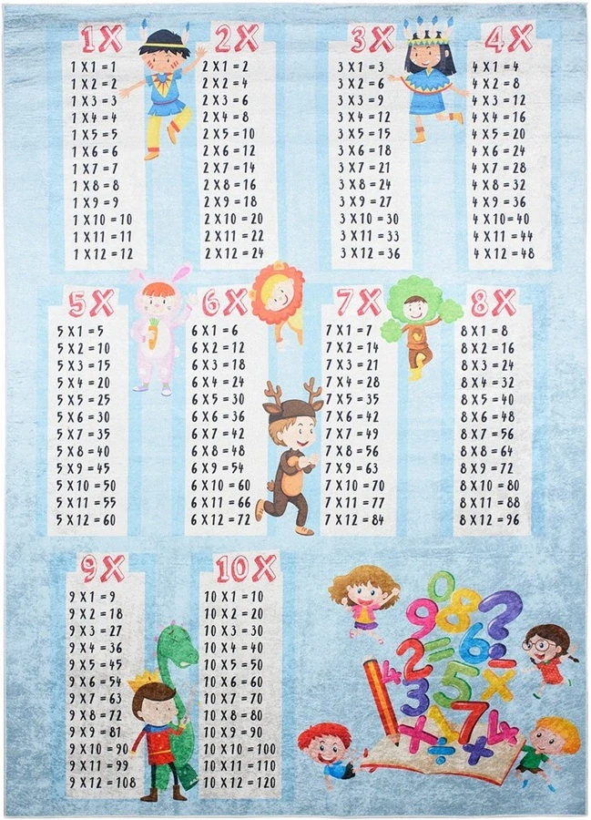 Dětský kusový koberec na hraní a vzdělávání Násobilkapro všechny děti je vyroben z kvalitního materiálu 100% Polyesteru na protiskluzovém podkladu, který zajistí bezpečnost dětí při hře.