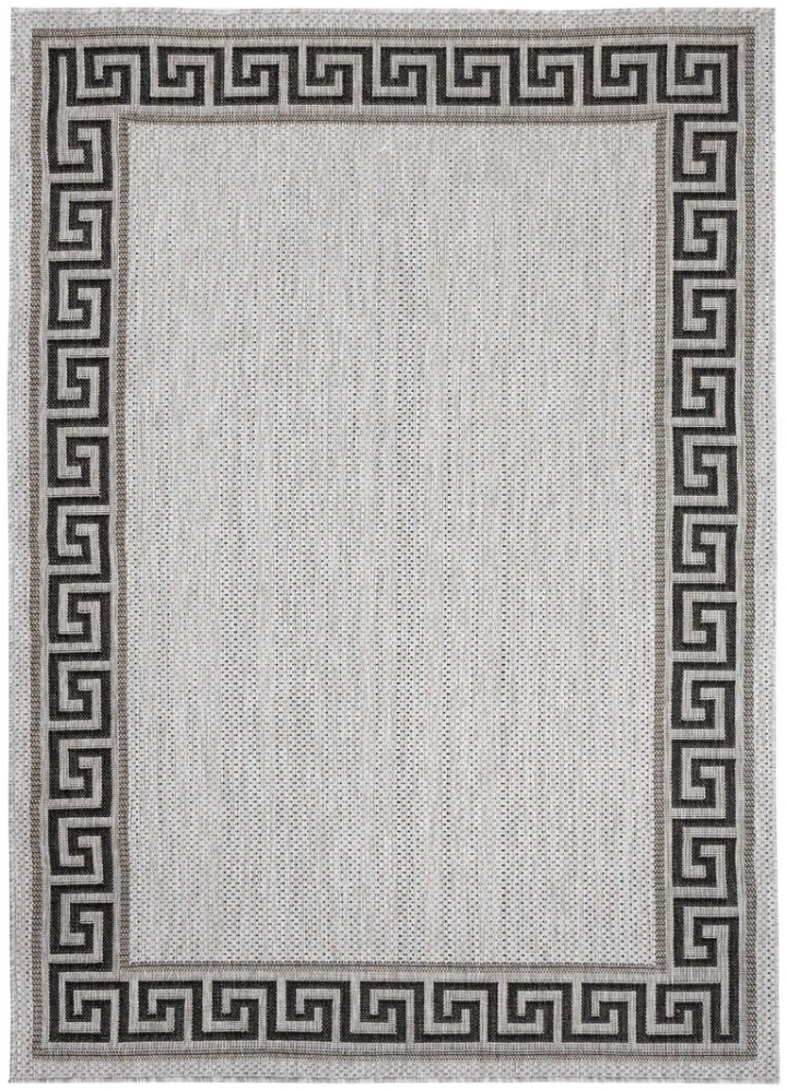 Buklé kusové koberce KF-91A hnědé a šedé barvy s gréckou bordúrou jsou dostupné v rozměrech od 60 x 100cm do 240 x 330cm. Buklák KF-91A je vyroben z materiálu 100% Polypropylén s výškou 6mm a hmotností 1400g/m2.