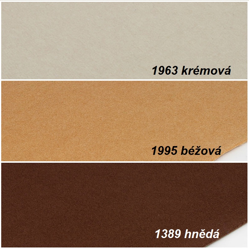Obkladové koberce Revexpo krémové, béžové a hnědé barvy, jsou velmi kvalitní vpichované koberce s jemným velurovým vlasem, se používají hlavně na polepení sten např. za dětskou postelí, lepení různeho nábytku, poliček, reprobeden, na školní nástěnky, také na polstrování aut a jiné.