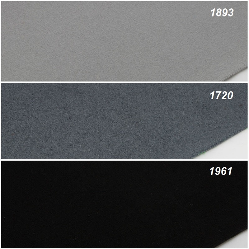 Obkladové koberce Revexpo světle šedé, šedé a černé barvy, jsou velmi kvalitní vpichované koberce s jemným velurovým vlasem, se používají hlavně na polepení sten např. za dětskou postelí, lepení různeho nábytku, poliček, reprobeden, na školní nástěnky, také na polstrování aut a jiné.