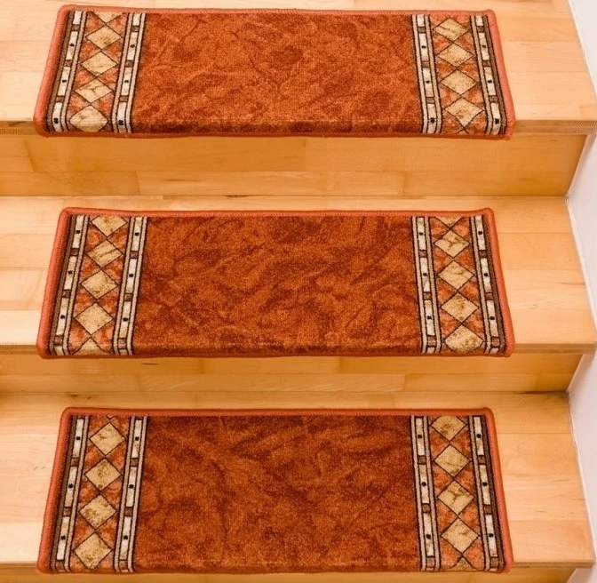 Kobercové nášlapy na schody CHS25 se vzorem v příjemných pestrých barvách, jsou dostupné ve tvaru půlkruhu a obdélníku o rozměru 65x 24cm +3cm ohyb a 77 x 24cm +3cm ohyb